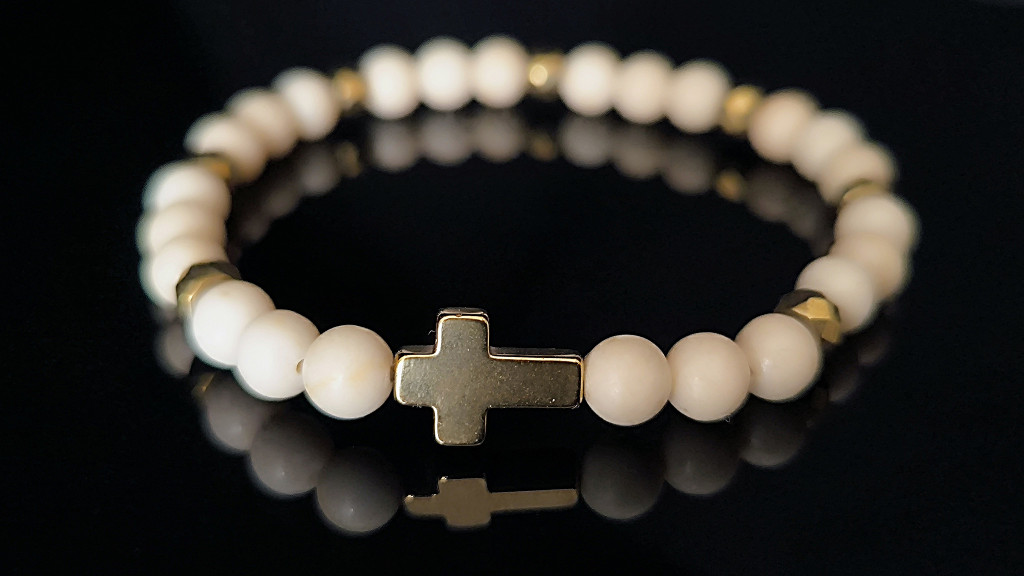 Ez a karkötő a hit szelíd oldalát képviseli: azt az erőt, amely nem harsány, mégis mindent átformál.