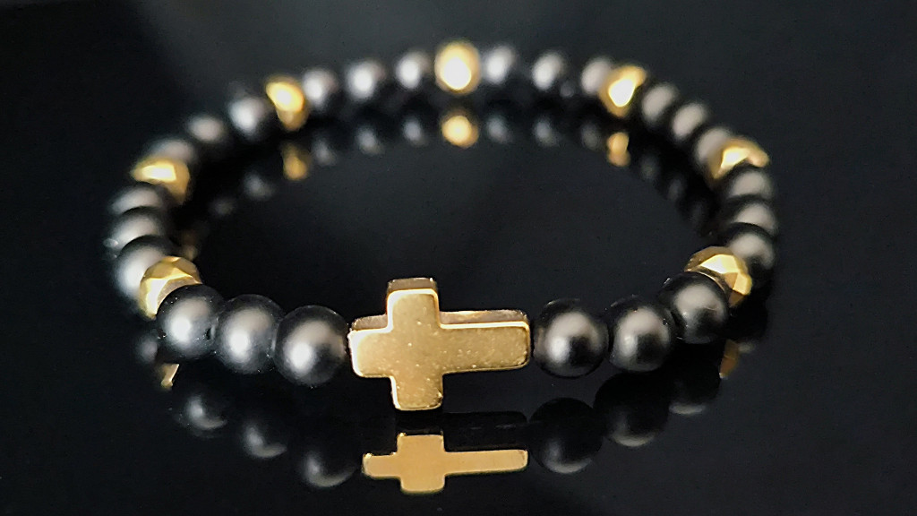 Ez a karkötő a hit szilárd, kitartó oldalát hordozza: a rendíthetetlenséget, amely a csendben is ott van.