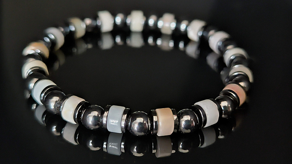 #Monolith #férfikarkötő #amazonit #hematit #férfiékszer #stílus #önuralom #magabiztosság #bySusanVégh