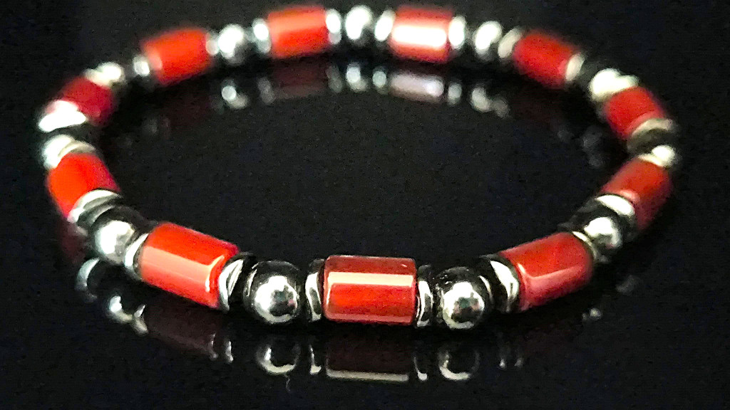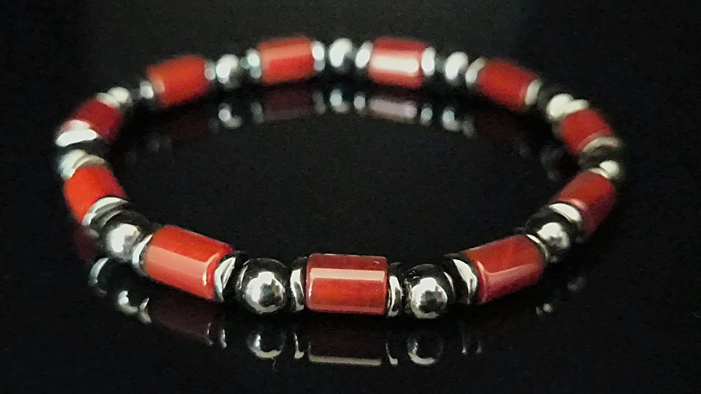 karneol férfi karkötő, vörös kő karkötő, Monolith férfi ékszer, elegáns férfi karkötő, hematit karkötő