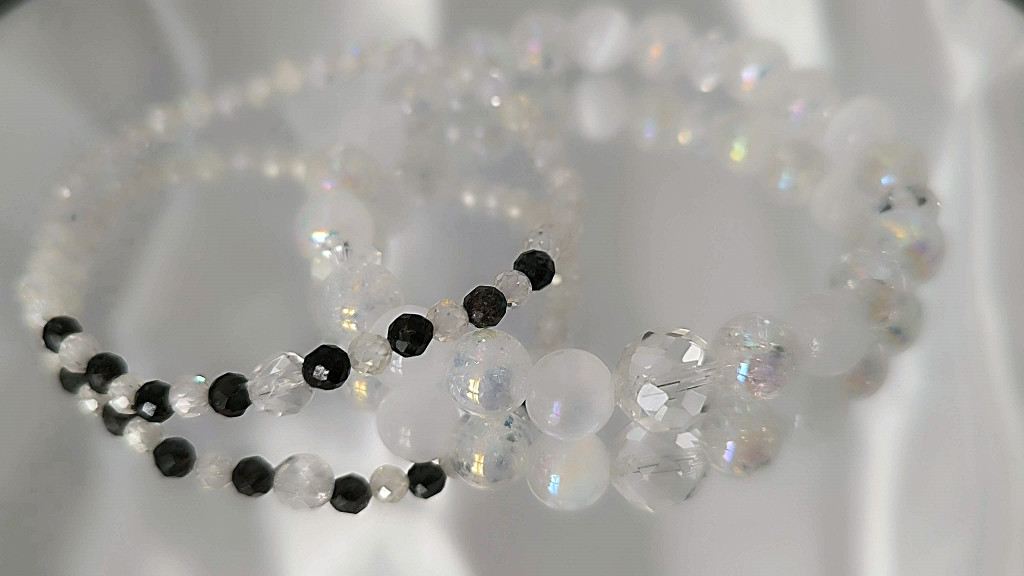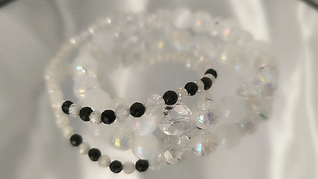 aura kvarc karkötő, fehér aura szelenit karkötő, fehér szelenit karkötő, őrangyal karkötő, spirituális karkötő, Garuda Ékszer Susan Végh, különleges kézműves karkötő, lelki védelem karkötő,