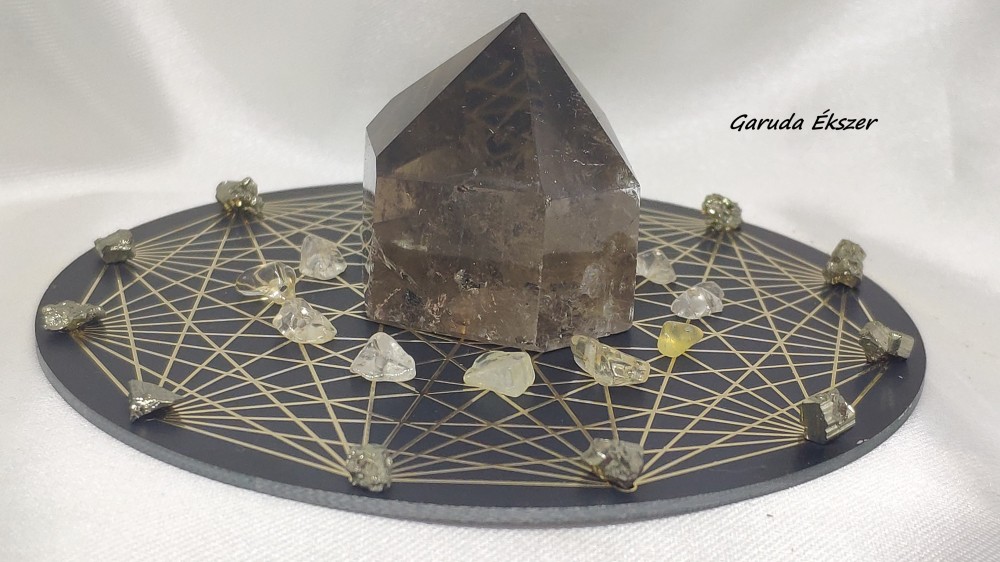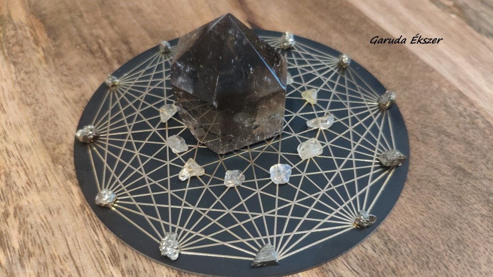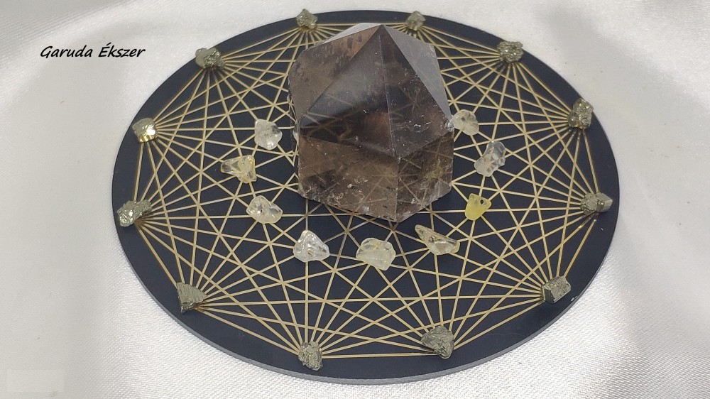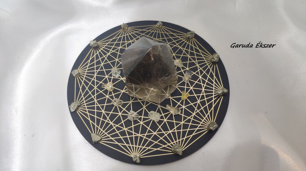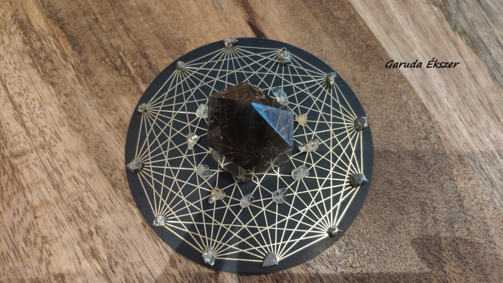 A korong a legkiválóbb minőség kompozit alap , a réz geometria 24 karátos arannyal futtatva mely nem csak széppé teszik, de értékes energiát is ad a koronghoz és segíti a kívánságok valóra váltását is. A korong EU területén készült európai minőség. A Kristályok megtisztítva áldva, speciálisan programozva és feltöltve a legtisztább életenergiával !