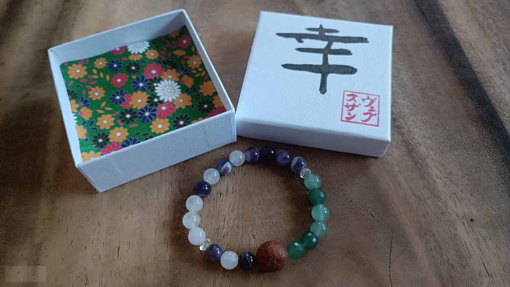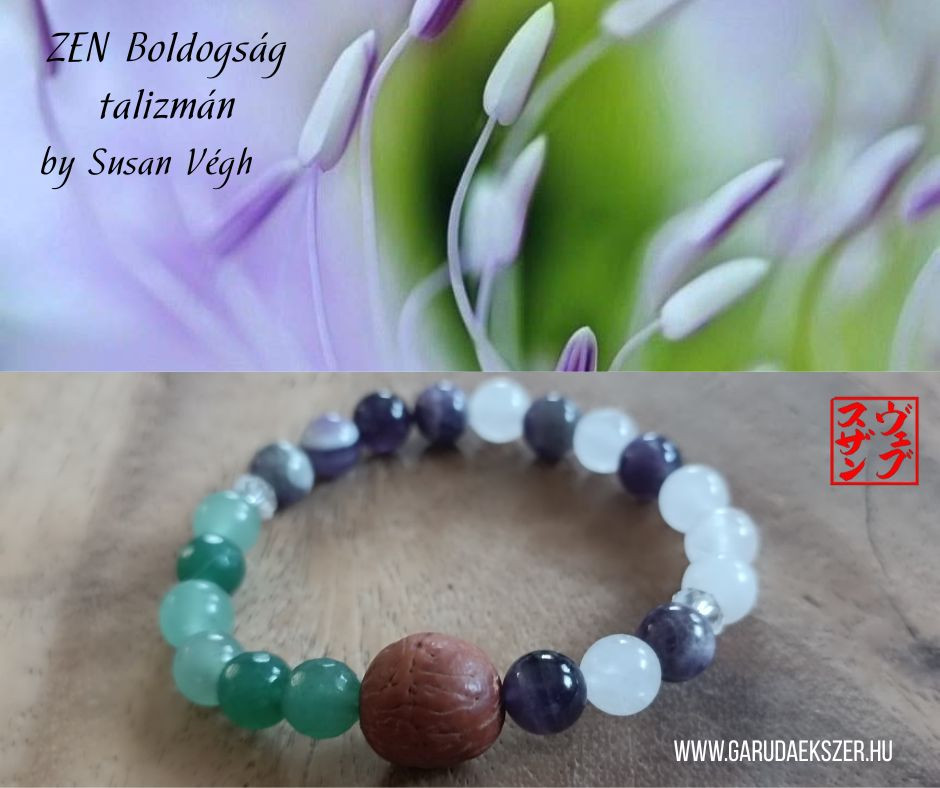 Dél Ázsiában és Japánban a ZEN gyökereinek alapján kialakult egy különleges karkötő melyet a talizmán lélegzetének neveznek. Készítésénél a középpontba helyeznek egy magot vagy egy faragott fadarabot azzal a szándékkal, áldással, hogy teljesítse viselője kívánságát, ehhez hozzárendelnek bizonyos szabályok szerint egymással harmonizáló különböző kristályokat és fa gyöngyöket. Az összeállítások célja a harmónia, harmónia a természettel, harmónia a lelkeddel az élettel. A boldogság. Ez a talizmán más mint a többi. Kívánhatsz tőle és kívánságod teljesíteni fogja de addig is boldoggá tesz ! Napról napra boldogabb leszel, jobban érzed magad. A karkötő programja megtalálja az utat a boldogságodhoz és felerősíti azt.