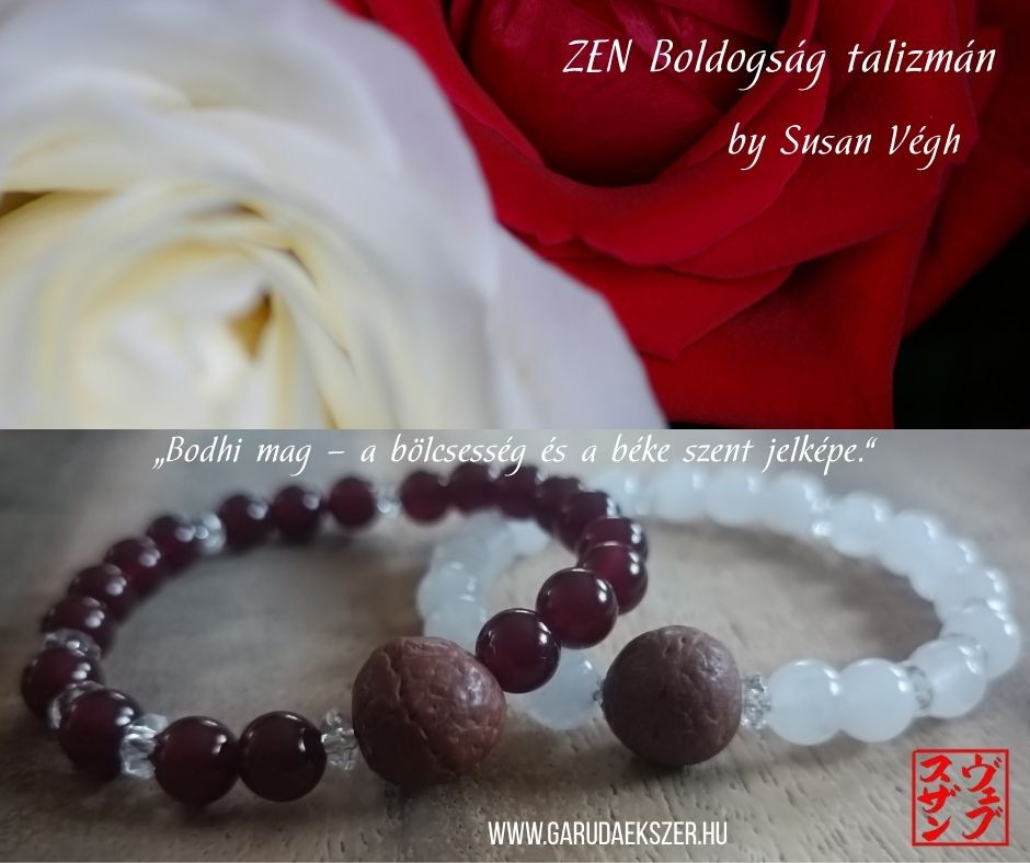 Dél Ázsiában és Japánban a ZEN gyökereinek alapján kialakult egy különleges karkötő melyet a talizmán lélegzetének neveznek. Készítésénél a középpontba helyeznek egy magot vagy egy faragott fadarabot azzal a szándékkal, áldással, hogy teljesítse viselője kívánságát, ehhez hozzárendelnek bizonyos szabályok szerint egymással harmonizáló különböző kristályokat és fa gyöngyöket. Az összeállítások célja a harmónia, harmónia a természettel, harmónia a lelkeddel az élettel. A boldogság. Ez a talizmán más mint a többi. Kívánhatsz tőle és kívánságod teljesíteni fogja de addig is boldoggá tesz ! Napról napra boldogabb leszel, jobban érzed magad. A karkötő programja megtalálja az utat a boldogságodhoz és felerősíti azt.
