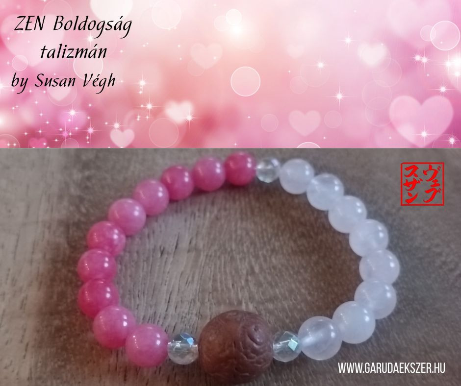 Dél Ázsiában és Japánban a ZEN gyökereinek alapján kialakult egy különleges karkötő melyet a talizmán lélegzetének neveznek. Készítésénél a középpontba helyeznek egy magot vagy egy faragott fadarabot azzal a szándékkal, áldással, hogy teljesítse viselője kívánságát, ehhez hozzárendelnek bizonyos szabályok szerint egymással harmonizáló különböző kristályokat és fa gyöngyöket. Az összeállítások célja a harmónia, harmónia a természettel, harmónia a lelkeddel az élettel. A boldogság. Ez a talizmán más mint a többi. Kívánhatsz tőle és kívánságod teljesíteni fogja de addig is boldoggá tesz ! Napról napra boldogabb leszel, jobban érzed magad. A karkötő programja megtalálja az utat a boldogságodhoz és felerősíti azt.