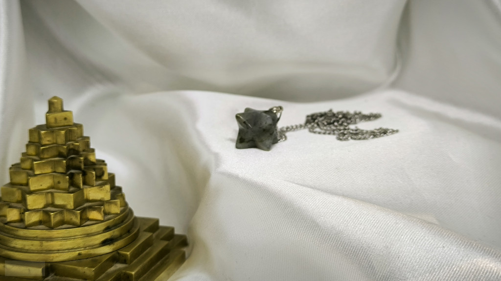 Garuda Frekvencia Kristály Skaláris Medál 852 Hz–Labradorit Merkaba ásvány medál 852 HZ solfeggio/szolfézs frekvenciával