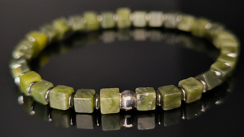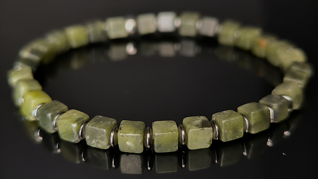 férfi ásványkarkötő, prémium férfi ékszer, nefrit jade karkötő, hematit karkötő, elegáns férfi karkötő, Steve McQueen ihletésű karkötő, limitált ásványkarkötő, ajándék férfiaknak, Monolith by Susan Végh, zöld férfi karkötő